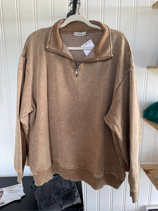 Plus Acid Wash Fleece Half Zip Pullover