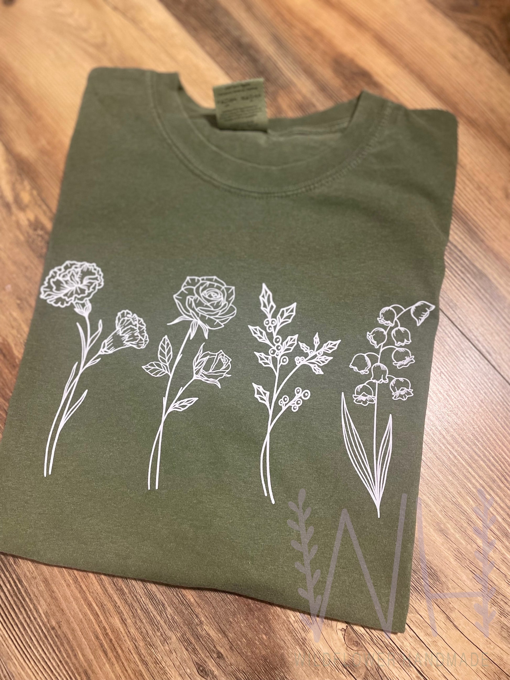 Shown on Comfort Colors Moss. Crewneck will be Gildan Military Green