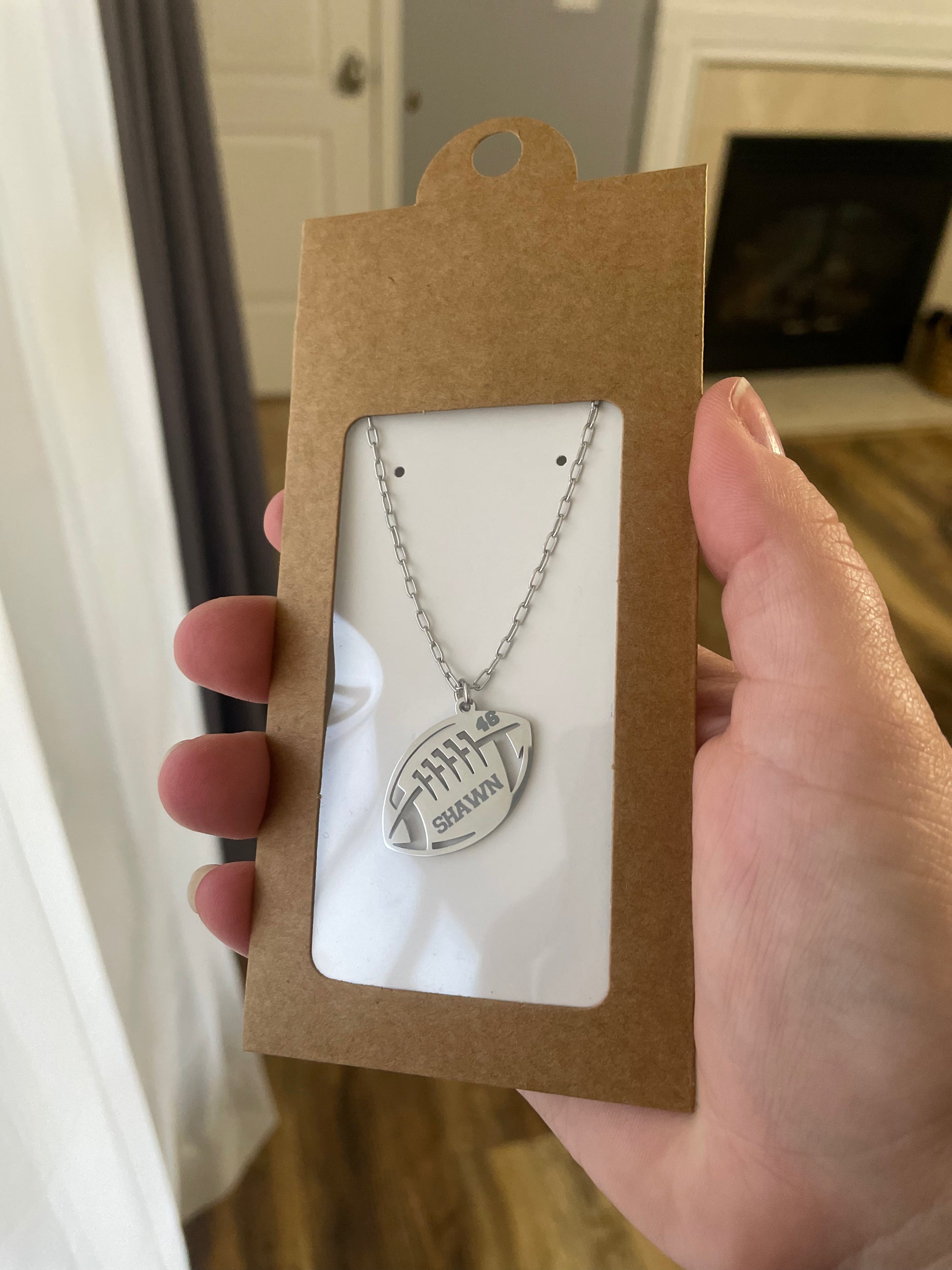 Custom Engraved Football Pendant Necklace