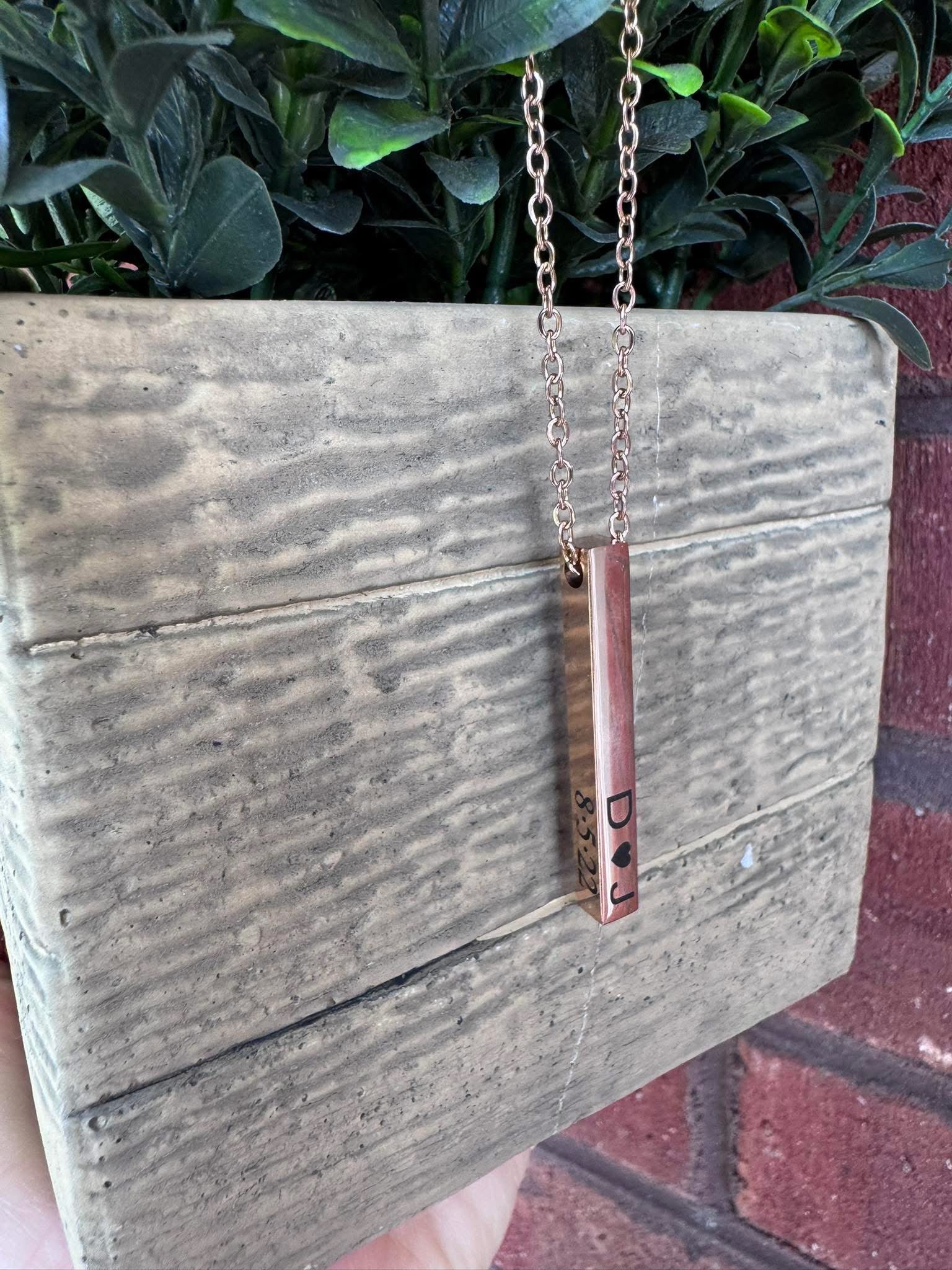 **The text color will slightly vary. It changes from a metal color like pictured to a darker/lighter engraving depending on the light**