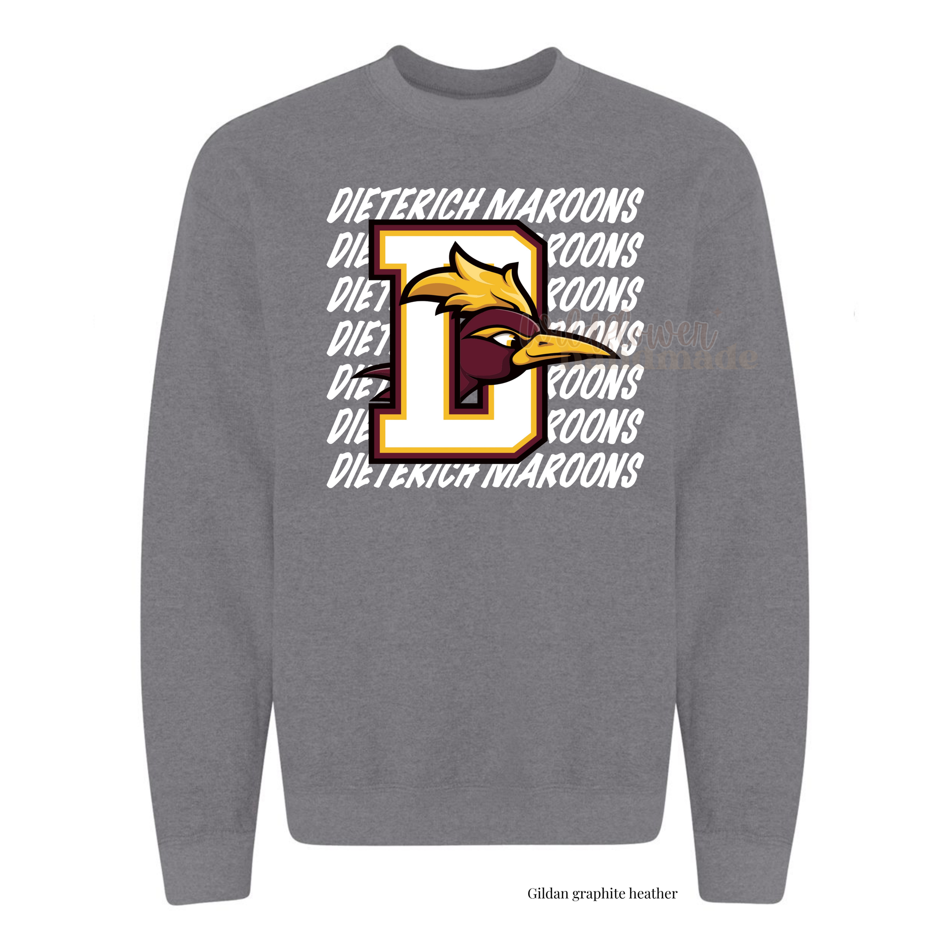 All styles are Gildan brand unisex and fit true to size. Most color options are available in a t-shirt, crewneck sweatshirt, or hooded sweatshirt. Orders can be picked up at Dieterich High School, shipped directly to you, or picked up in Effingham for free (Pickup instructions emailed once order is ready). Regular turnaround is 14-21 business days. Please feel free to email with any questions!