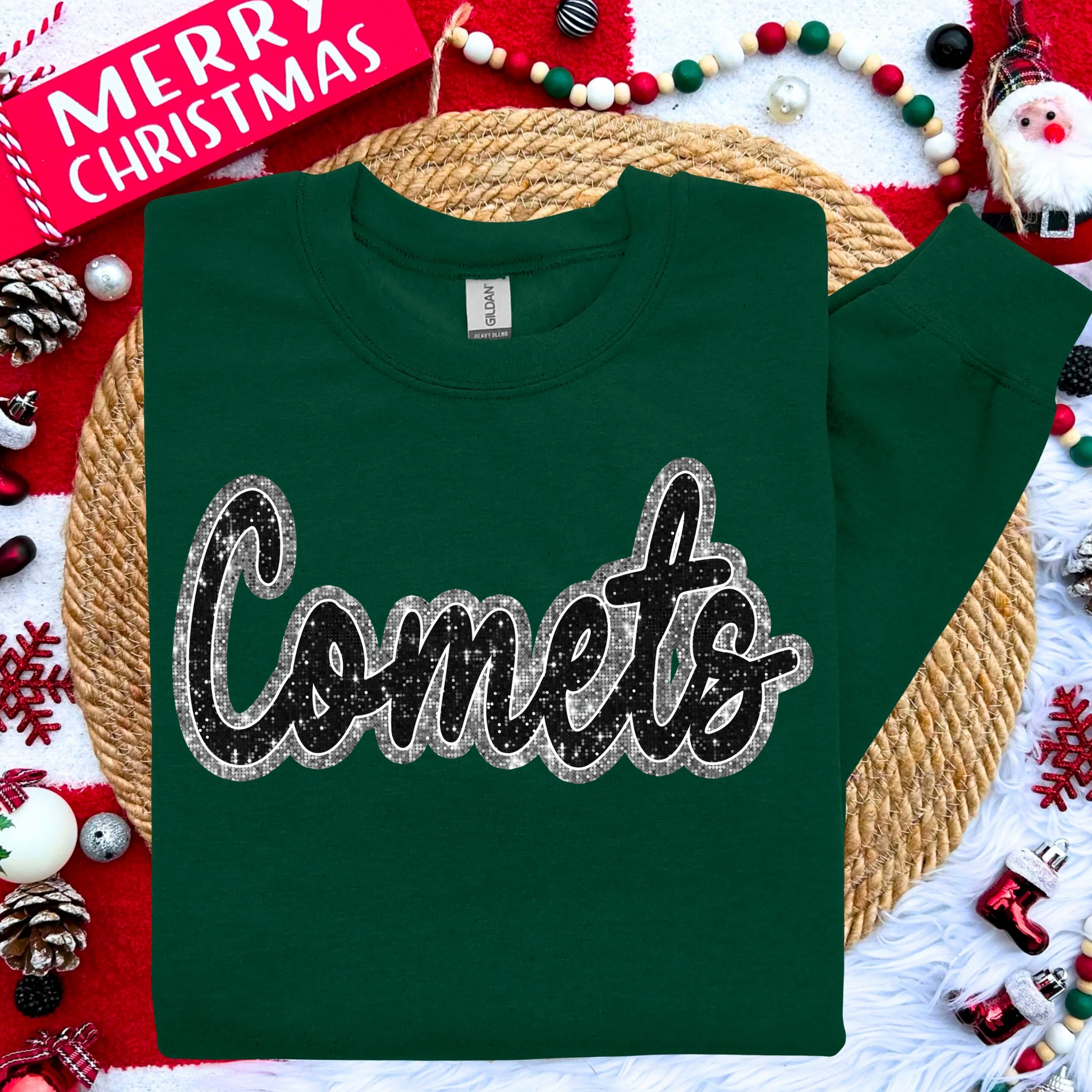 **Please note - this design is made using a FAUX sequin print. The design is completely flat against the shirt**
