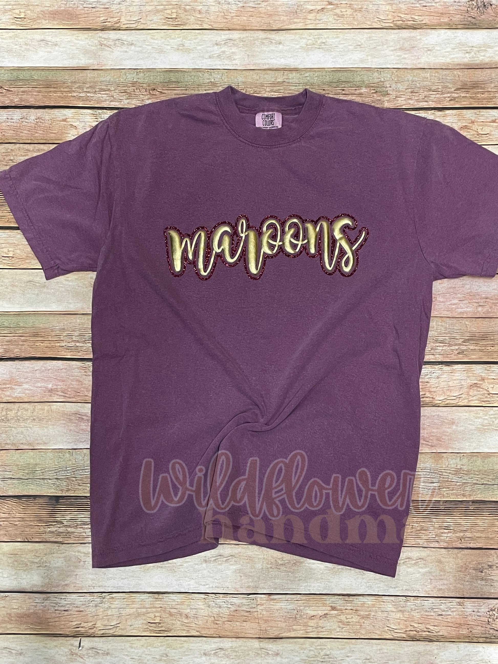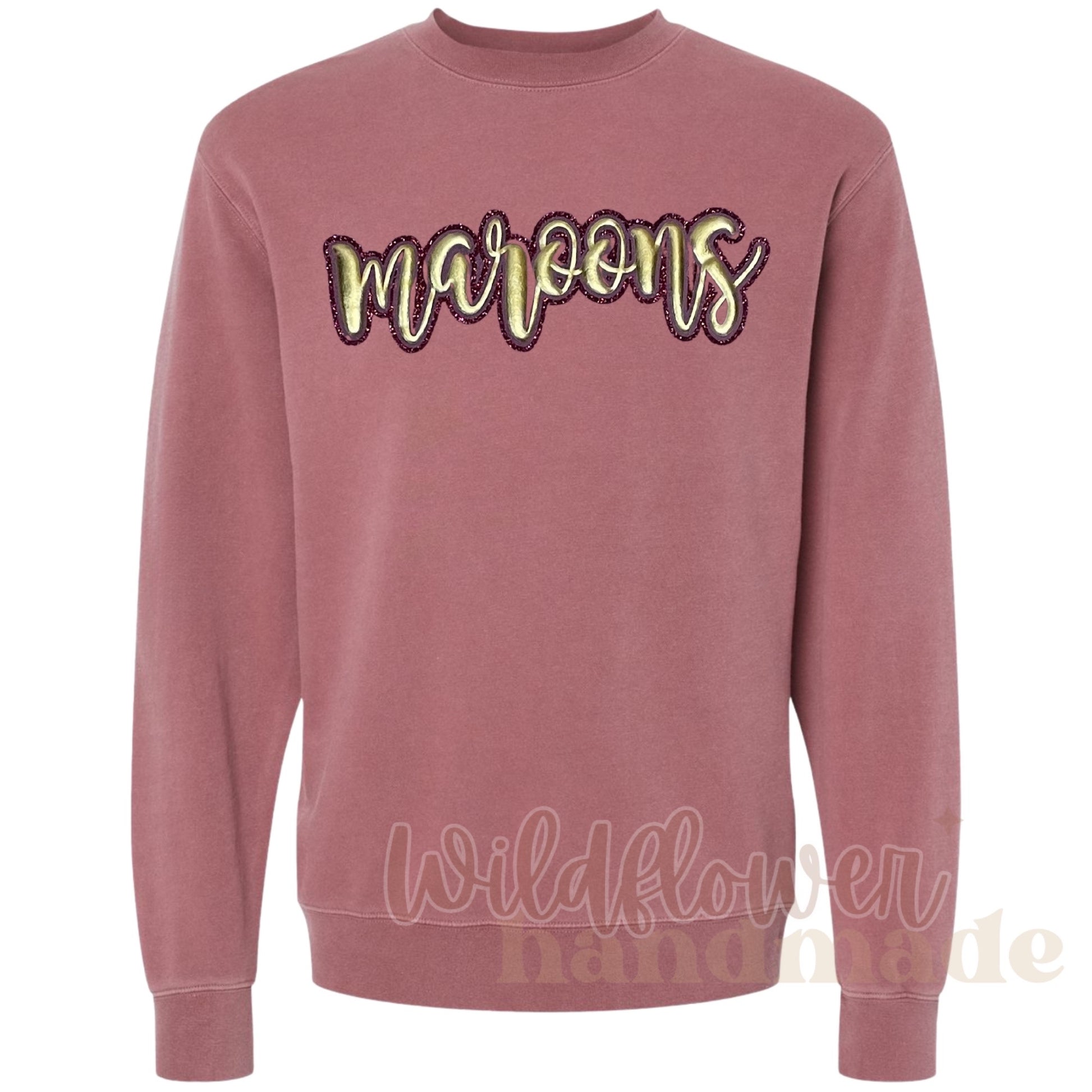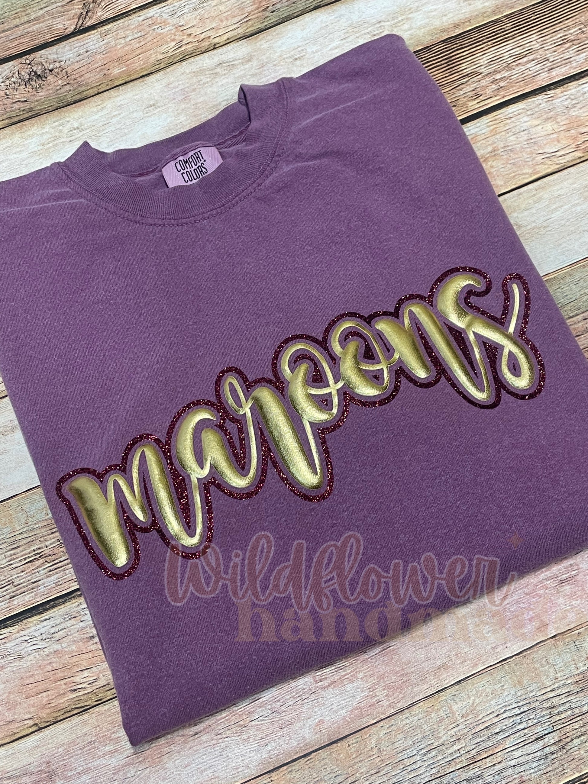 Shown on Comfort Colors Berry t-shirt and Independent Trading Maroon crewneck.