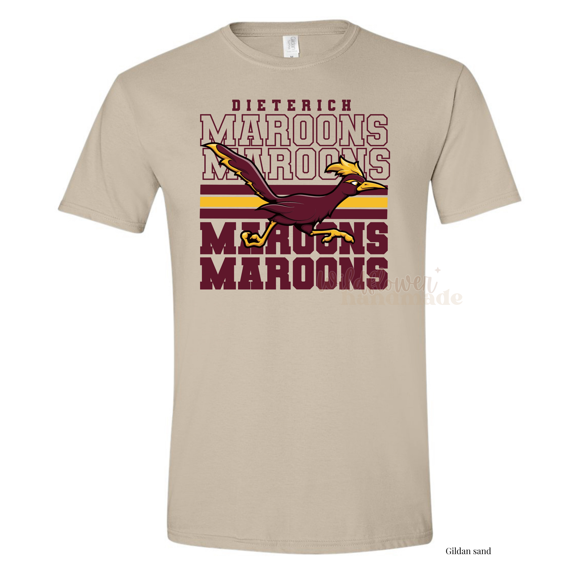 All styles are Gildan brand unisex and fit true to size. Most color options are available in a t-shirt, crewneck sweatshirt, or hooded sweatshirt. Orders can be picked up at Dieterich High School, shipped directly to you, or picked up in Effingham for free (Pickup instructions emailed once order is ready). Regular turnaround is 14-21 business days. Please feel free to email with any questions!