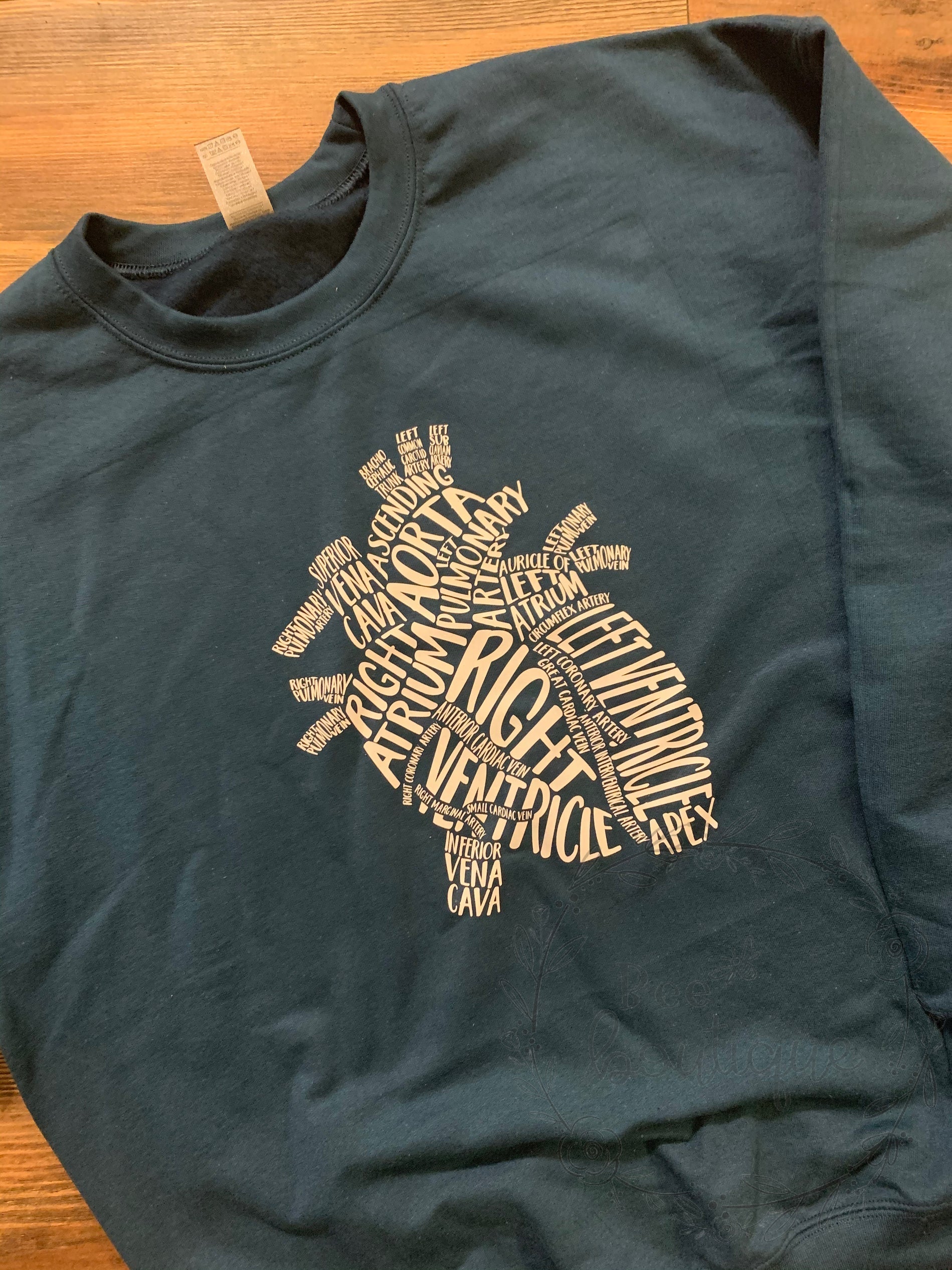 Shown on Comfort Colors midnight t-shirt, and Gildan 50/50 Indigo Blue sweatshirt