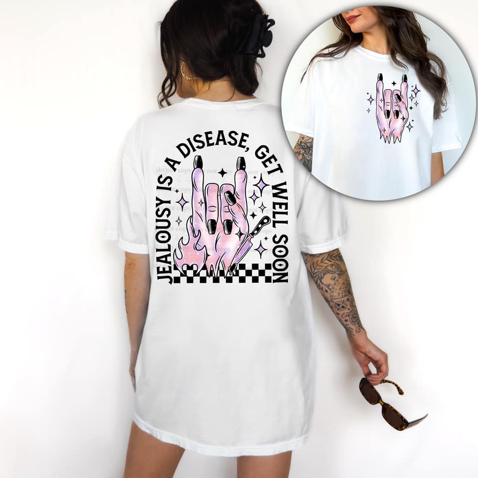 Large design goes on the back, with a coordinating pocket print on the front. Comfort Colors Pepper or White. Crewneck will be Gildan Charcoal or White