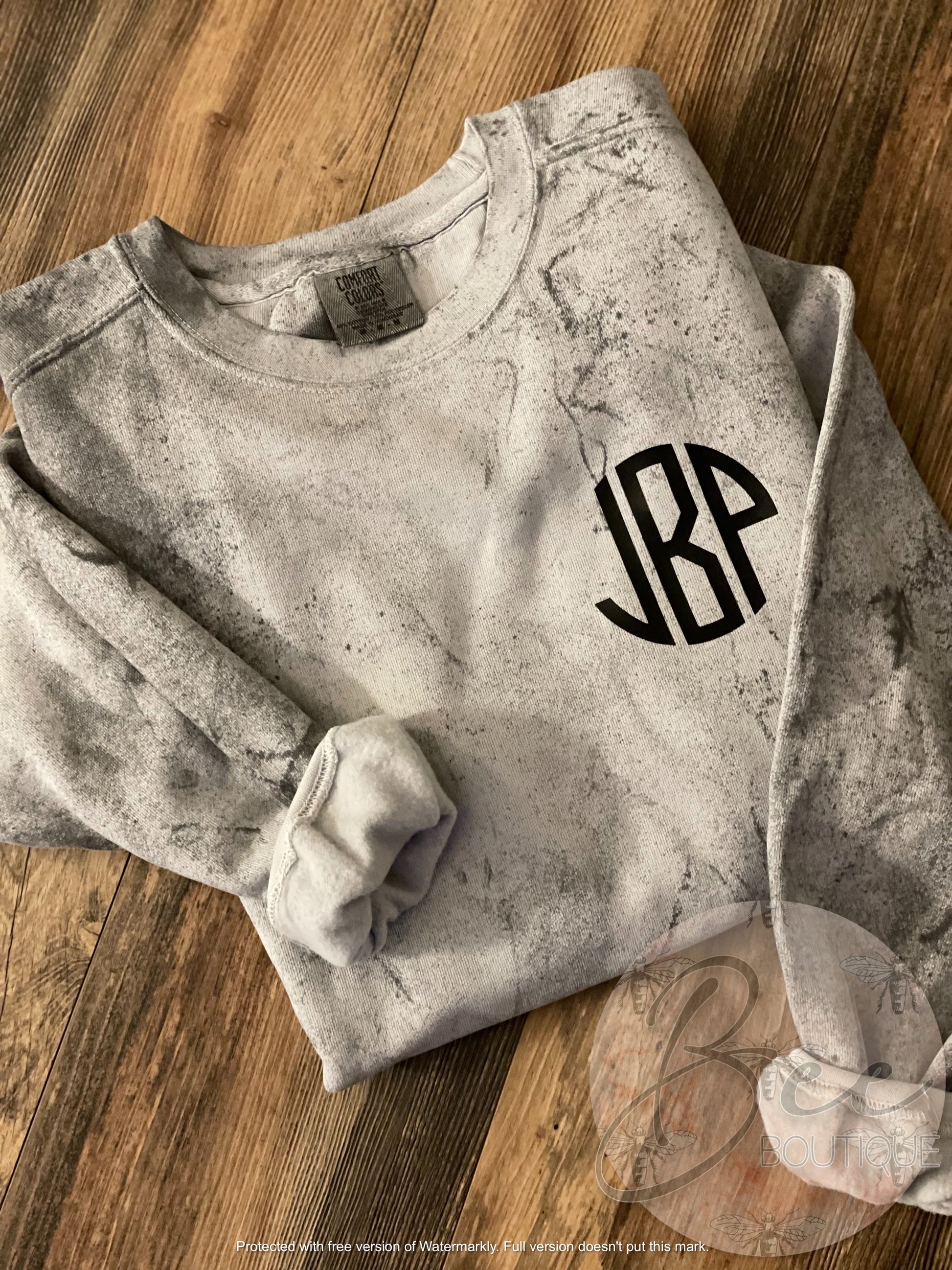 A simple pocket monogram perfect for every day wear! Shown on Comfort Colors Smoke