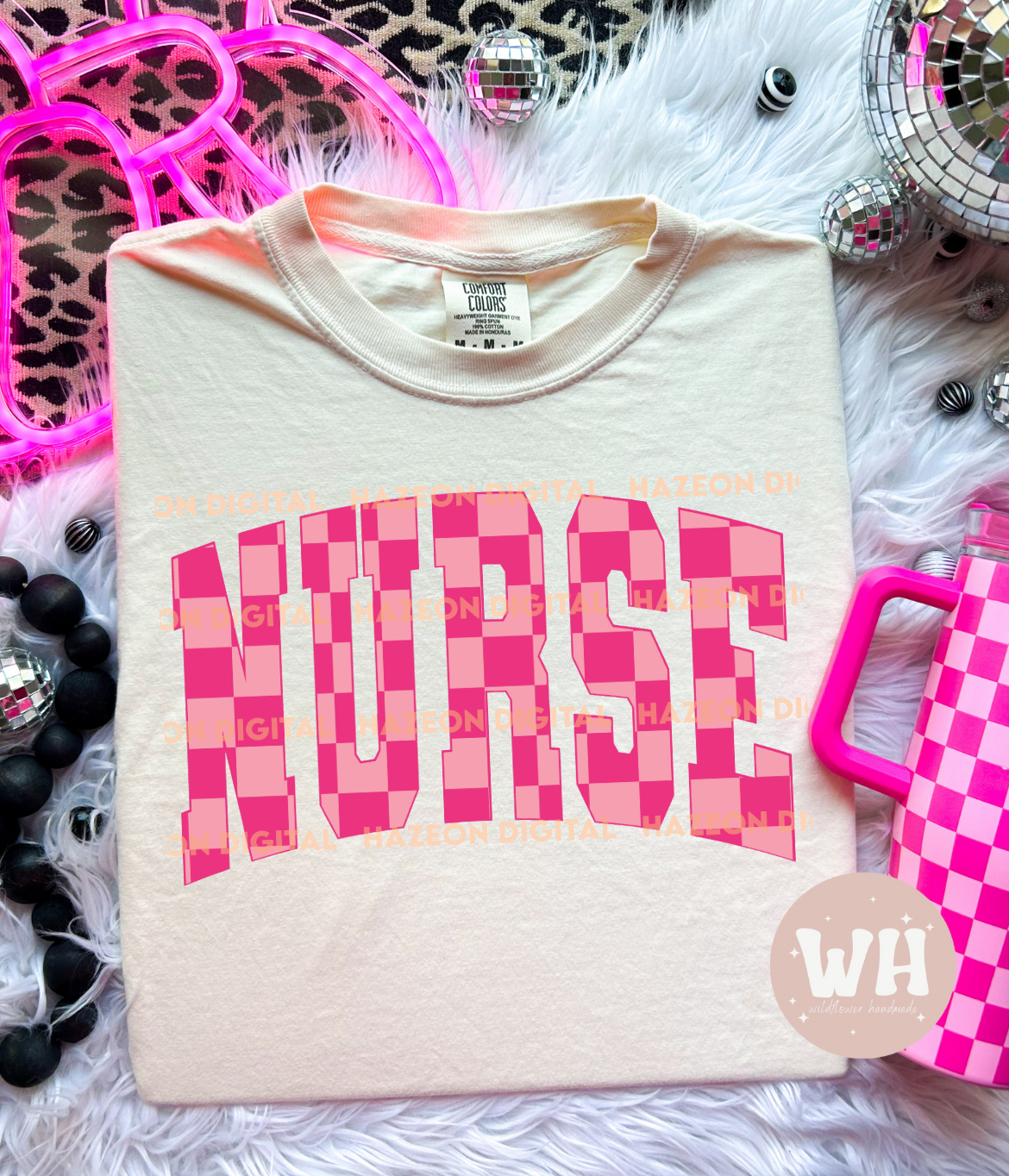 Pink checkered nurse tee