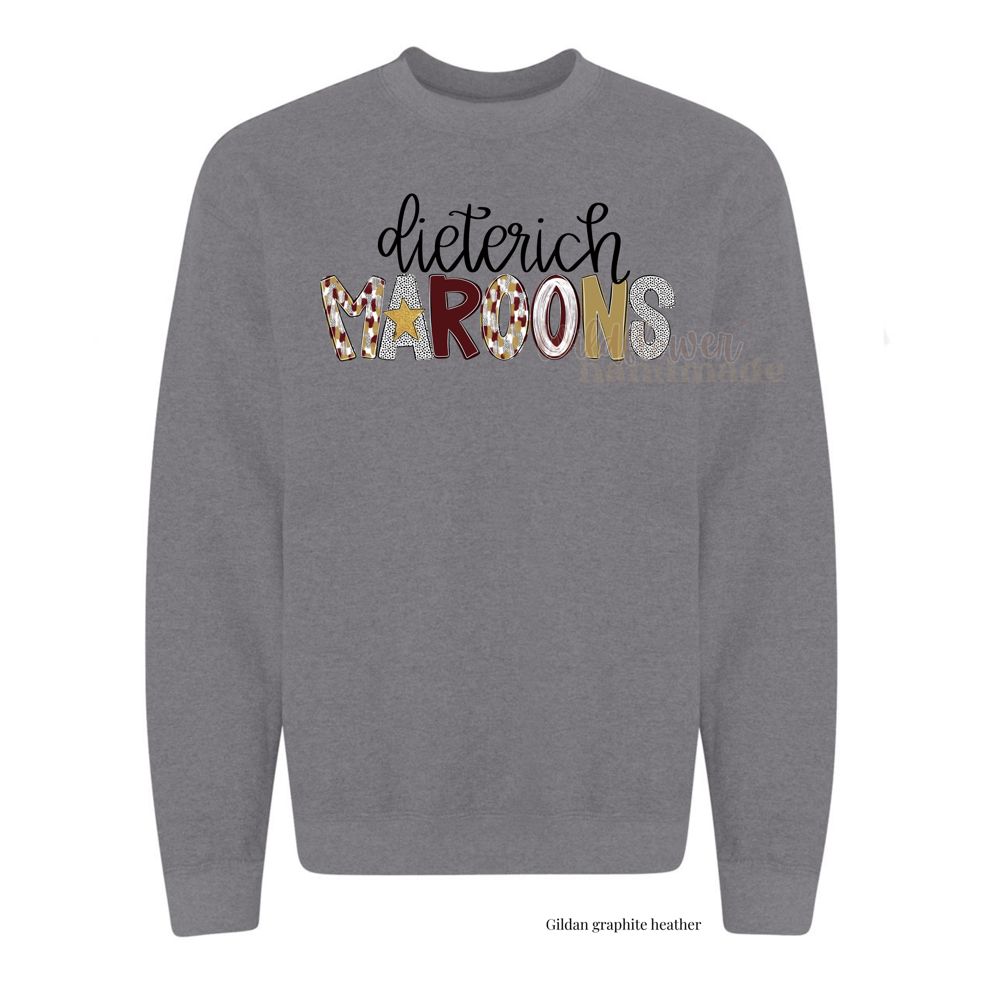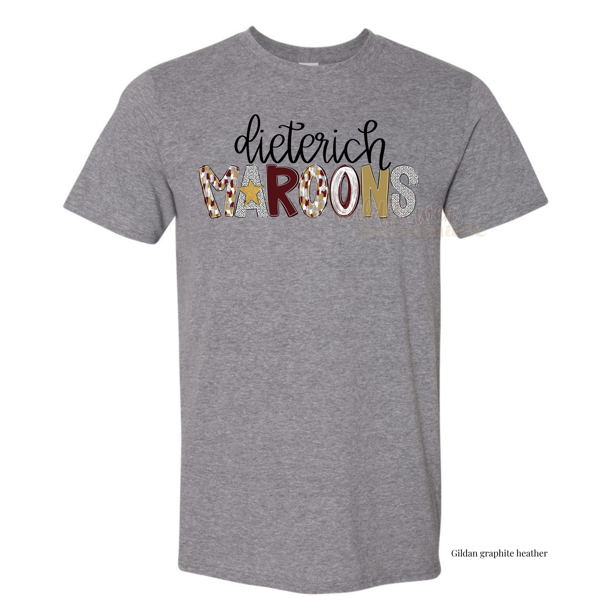 All styles are Gildan brand unisex and fit true to size. Most color options are available in a t-shirt, crewneck sweatshirt, or hooded sweatshirt. Orders can be picked up at Dieterich High School, shipped directly to you, or picked up in Effingham for free (Pickup instructions emailed once order is ready). Regular turnaround is 14-21 business days. Please feel free to email with any questions!