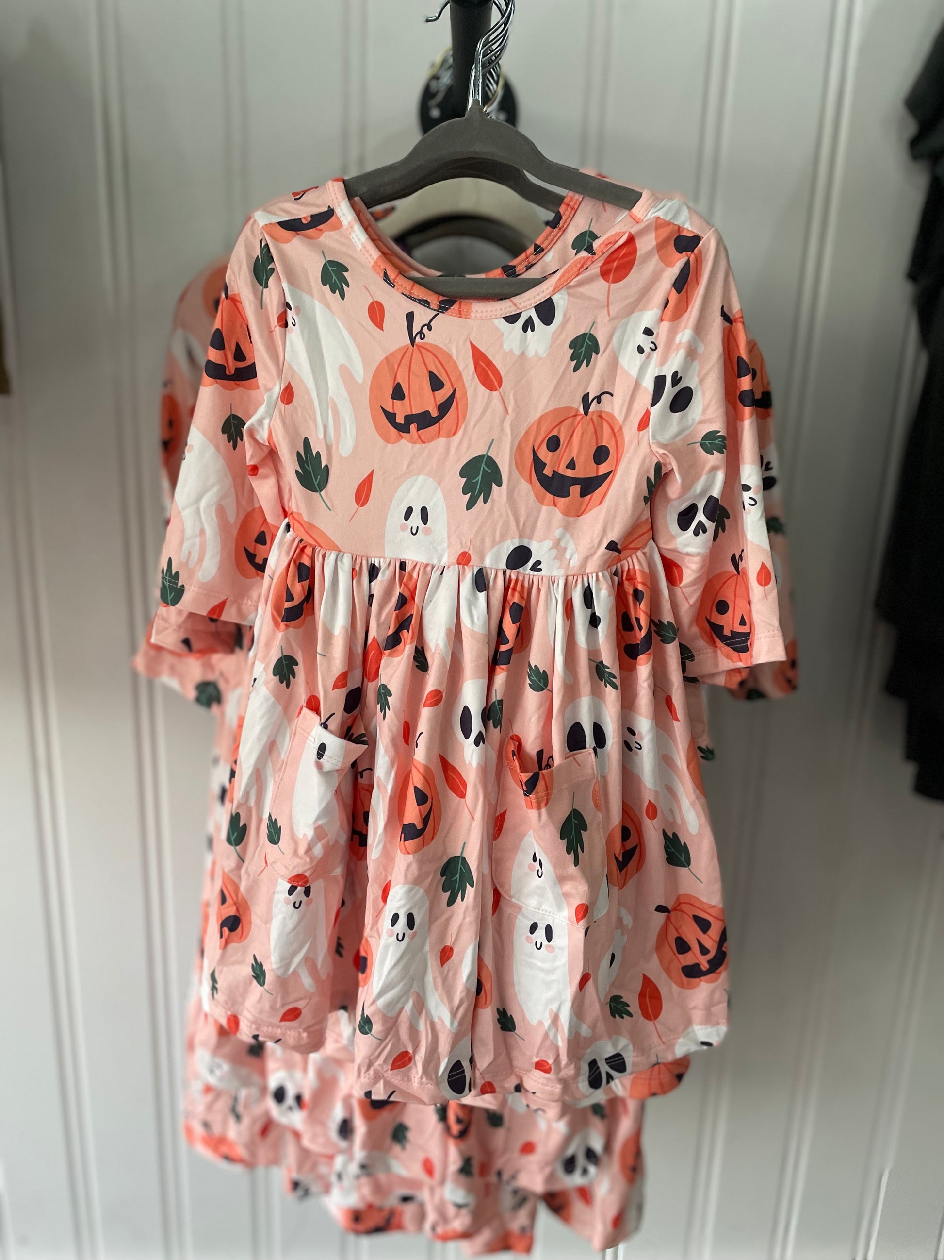 Pumpkin Peekaboo 3/4 Sleeve Pocket Twirl Dress