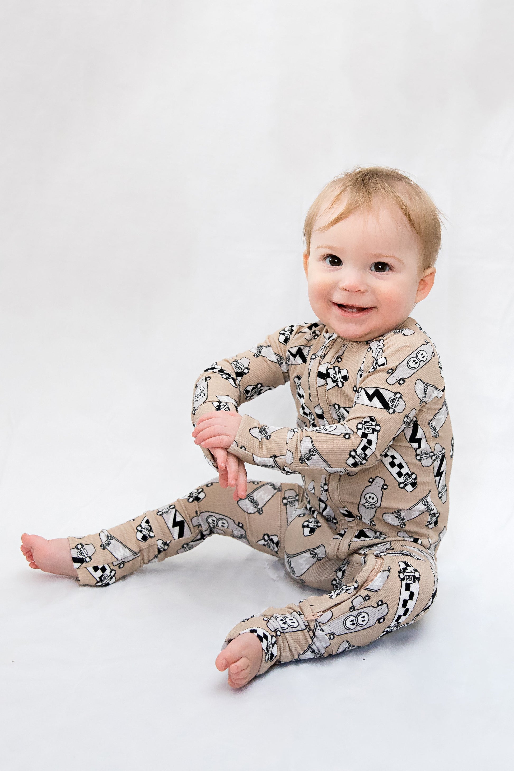 Our zip rompers are made with the softest ribbed bamboo and spandex blend, designed to last 3x longer than your average baby clothes. They feature fold over cuffs to protect those tiny hands and feet, a double zipper for easy diaper changes, and printed tags to avoid irritation.