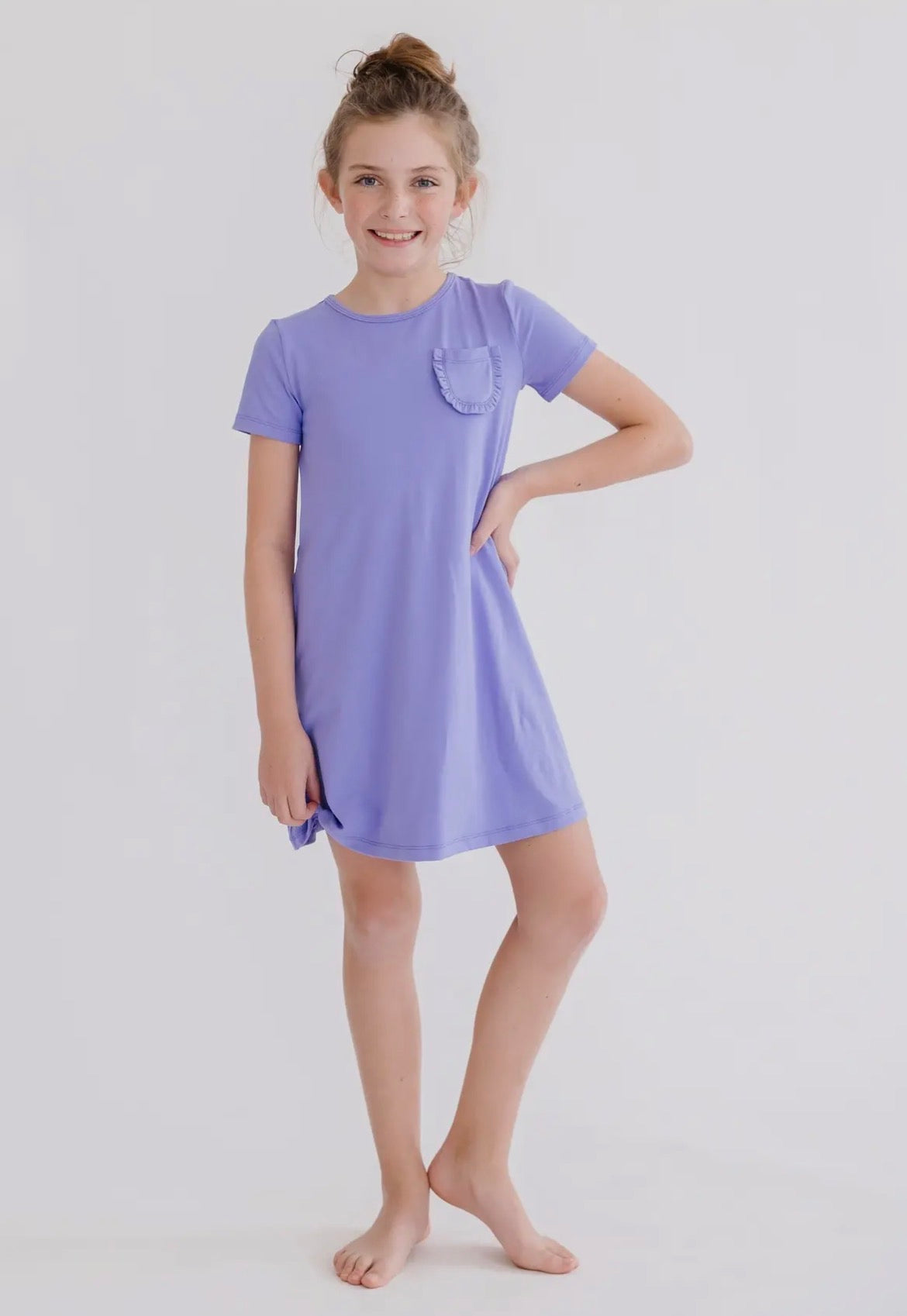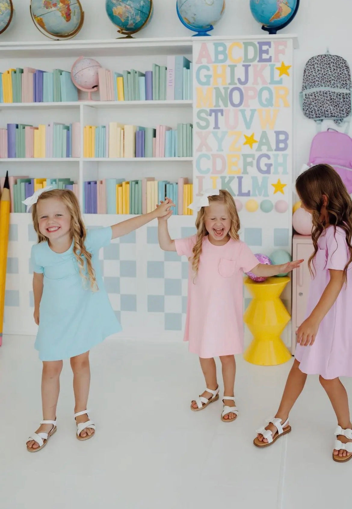 Our T-Shirt Dress is casual, comfortable but still girly. Perfect for school or the playground. Mix and match with our twirl shorts or leggings for a perfect, yet practical, outfit. Dress is finished off with a cute ruffle pocket.