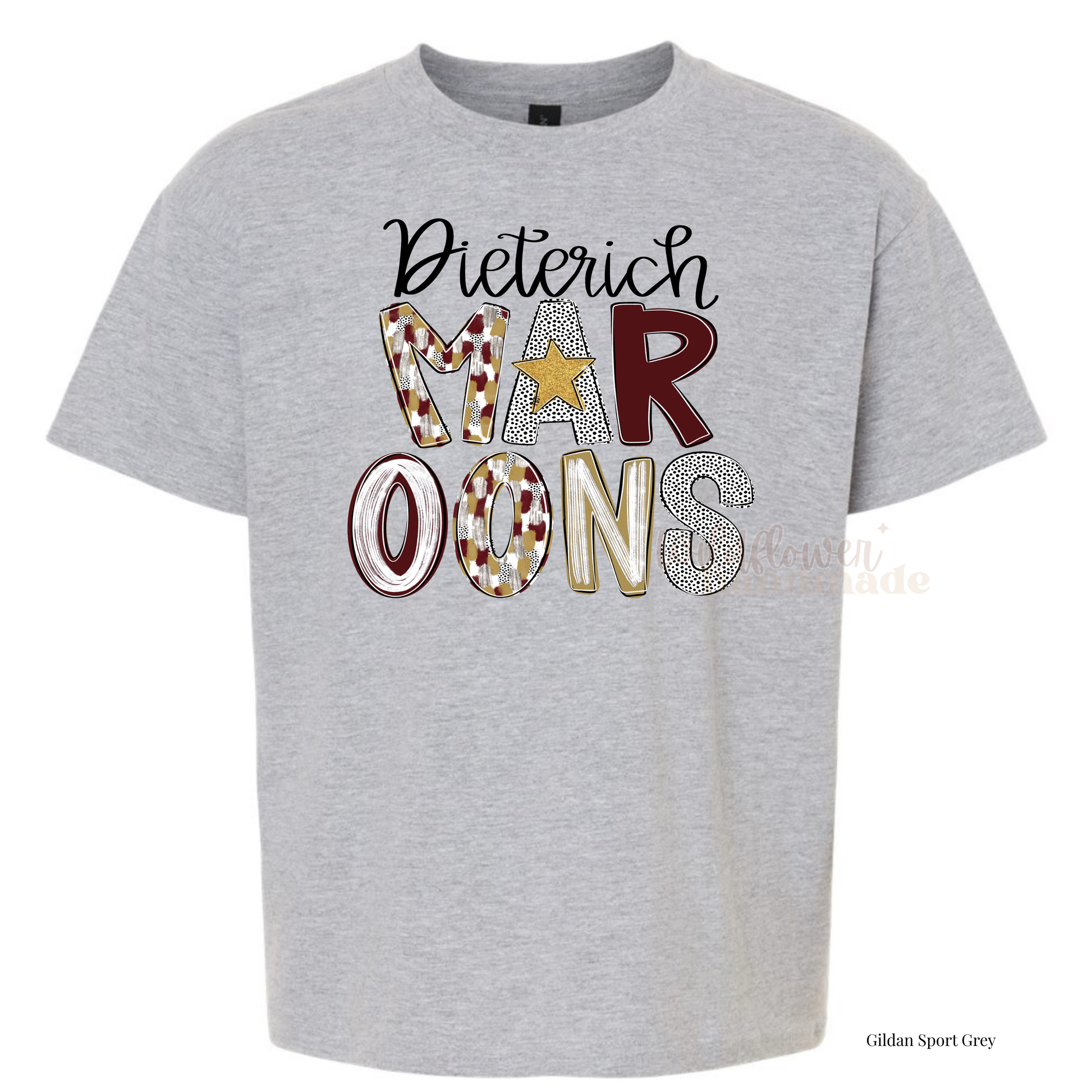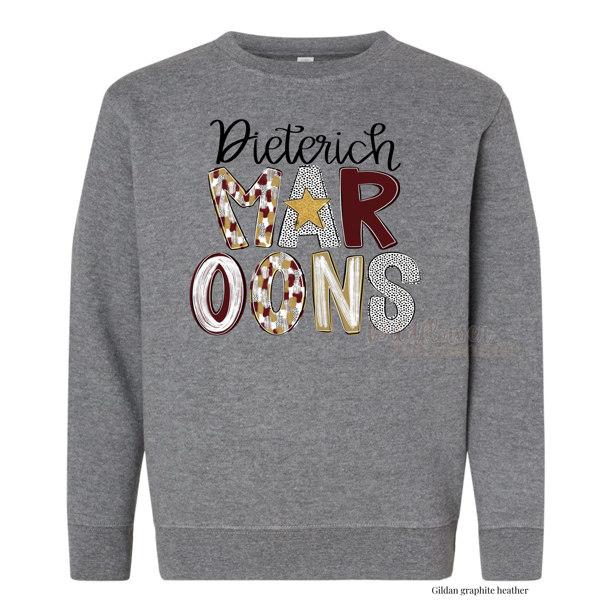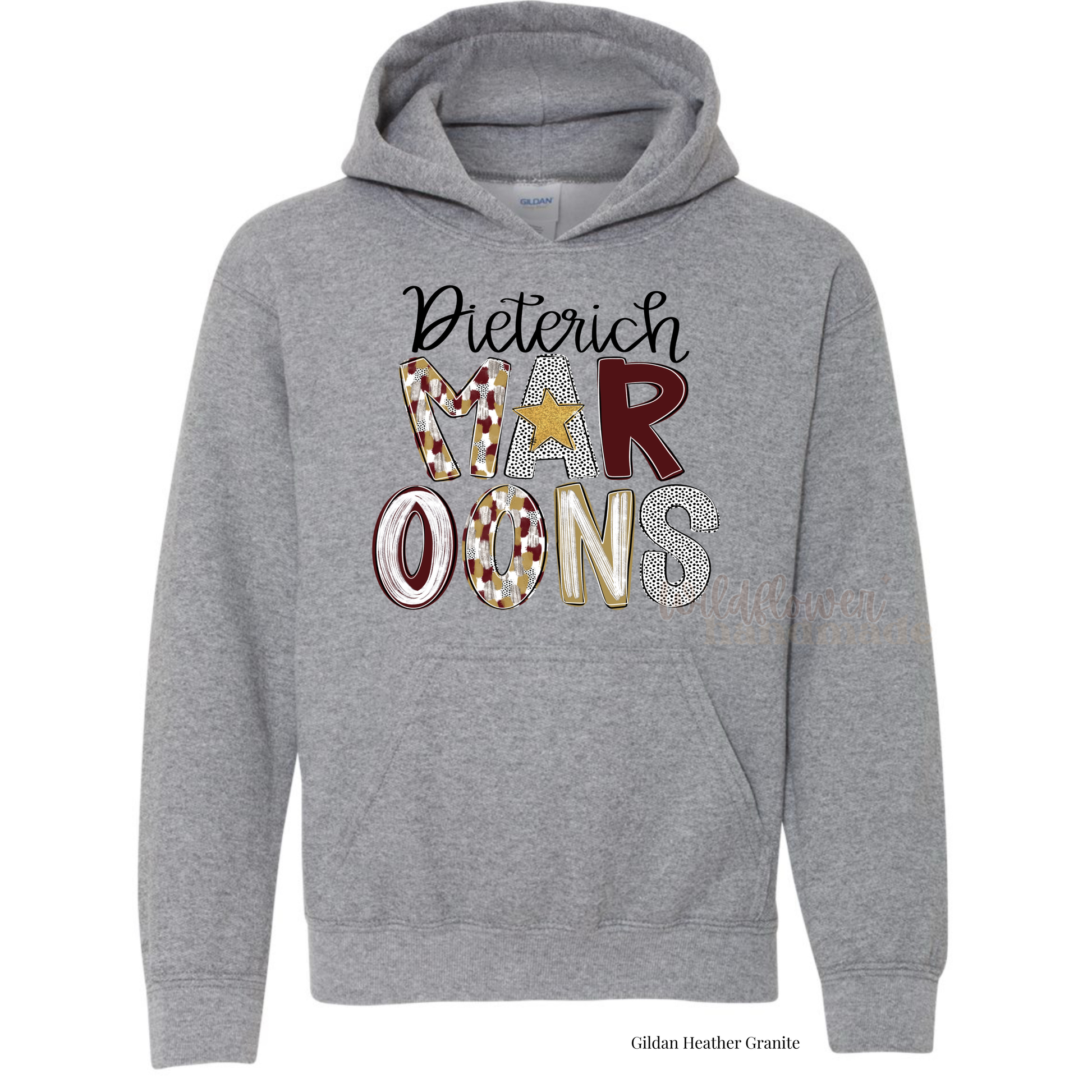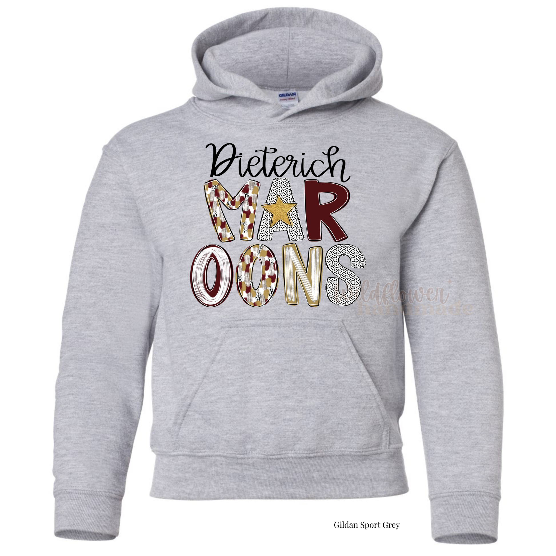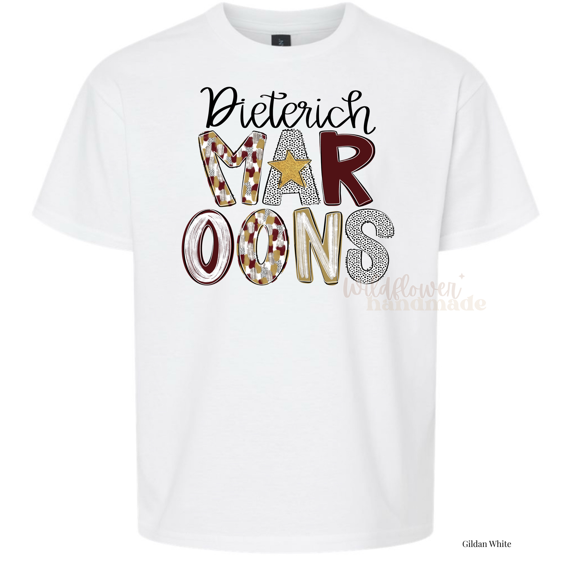 All styles are Gildan or LAT brand unisex and fit true to size. Most color options are available in a t-shirt, crewneck sweatshirt, or hooded sweatshirt. Orders can be picked up at Dieterich High School, shipped directly to you, or picked up in Effingham for free (Pickup instructions emailed once order is ready). Regular turnaround is 14-21 business days. Please feel free to email with any questions!